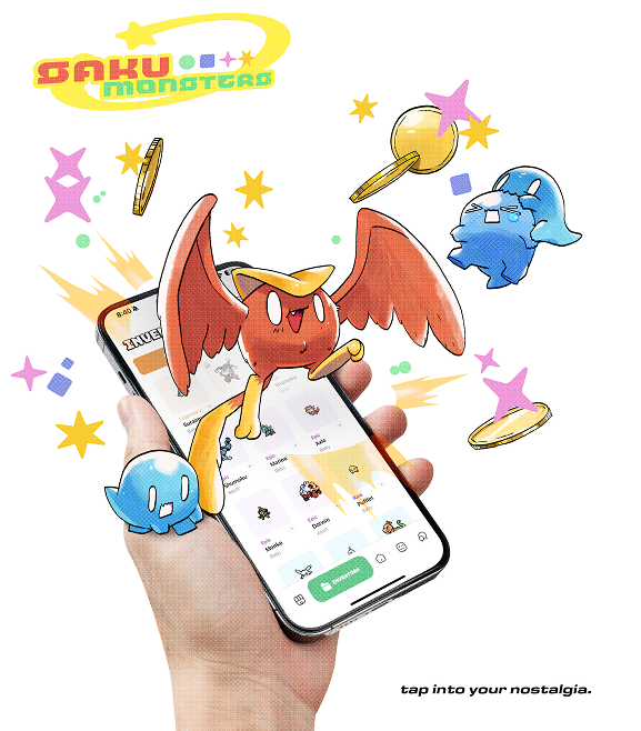 The Saku Monsters app is the home for our digital collectibles. It’s where players can hatch new monsters from eggs, build their collections, and discover the growing Saku universe. Each collectible isn’t just a token it’s a character, designed to feel alive through animations and personality. Early users competed in "first to react" egg tap notifications to earn points and coins. NFT monsters earn coins daily. It is not yet announced how these coins will be connect to future Saku Monsters products.